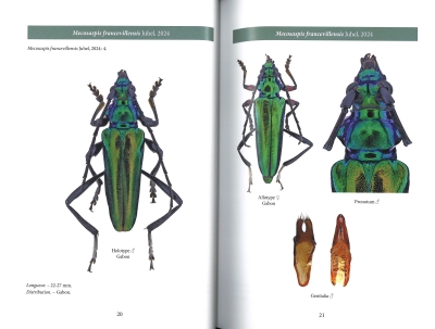 新シリーズとなる「アフリカのアオカミキリ族図説」の第1巻は、108タクサの成虫標本画像と一部♂の交尾器画像が紹介されています。