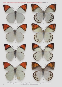 寒沢正明氏のコレクションによるツマベニチョウ48亜種について、分布図とともに各地の個体の地理的変異が図示され、