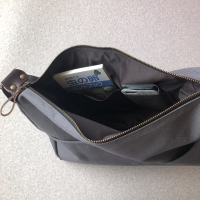 A4の書類が横向きにすっぽり入る大きさで、お仕事にも普段使いにも便利です。開口部にはファスナーがついていて中身が飛び出る心配がありません。