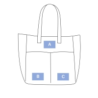 刺繍付け位置=A:上部中央 B:左ポケット C:右ポケット
