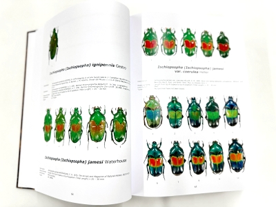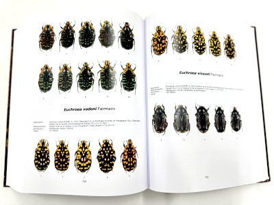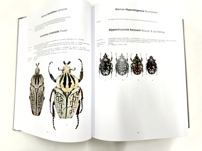 タイプ標本のみの記録しかない3種を除いて、現在記録されているすべてのアフリカ(マダガスカルは含まない)のハナムグリ亜科 約1,000種をカバーした、とても豪華な大図鑑です。