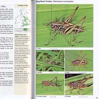 英国とアイルランドに産するキリギリス・コオロギ・バッタ41種を紹介。基本的な構成は各種別に見開き2ページで、左ページに解説(英名・学名・形態・近似種・体長・成虫の出現期・生活史・生息環境・分布地図など)、右ページに2〜5点の生態写真(一部は標本写真)を掲載(カラー写真合計約580点)。カラー写真を用いた絵解き検索あり。ハードカバー、テキスト:英語